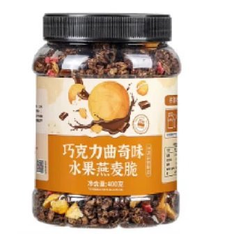 Orange label chocolate chip cookie flavor with fruit oat